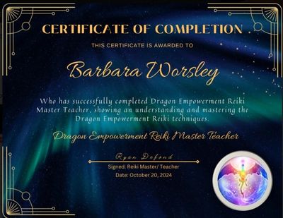 Barbara is a certified Dragon Empowerment Reiki Master, a Mind, Body, Spirit practitioner, blending her nursing background with holistic healing modalities. Her passion for dragons and spirituality has been a guiding force throughout her journey.
